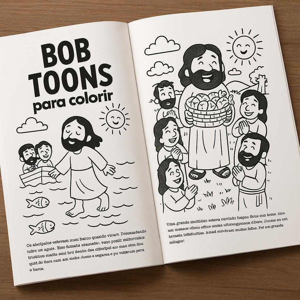 25 páginas para colorir cenas bíblicas no traço fofo Bob Toons.